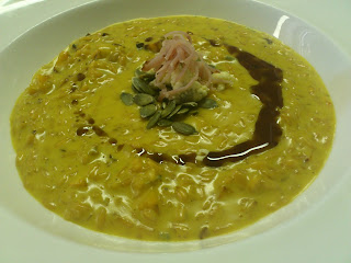 Take out now while there is still a little slit of white in the rice, this will be served "Al Dente" once on the plate/bowl you can garnish with toasted pumpkin seeds, Gorgonzola, panchetta and pumpkin oil like the picture above or you can take some butter and on a medium heat fry some sage leaves until the butter starts to turn golden, and drizzle this over the top of the risotto...yummmmmmy my favourite.